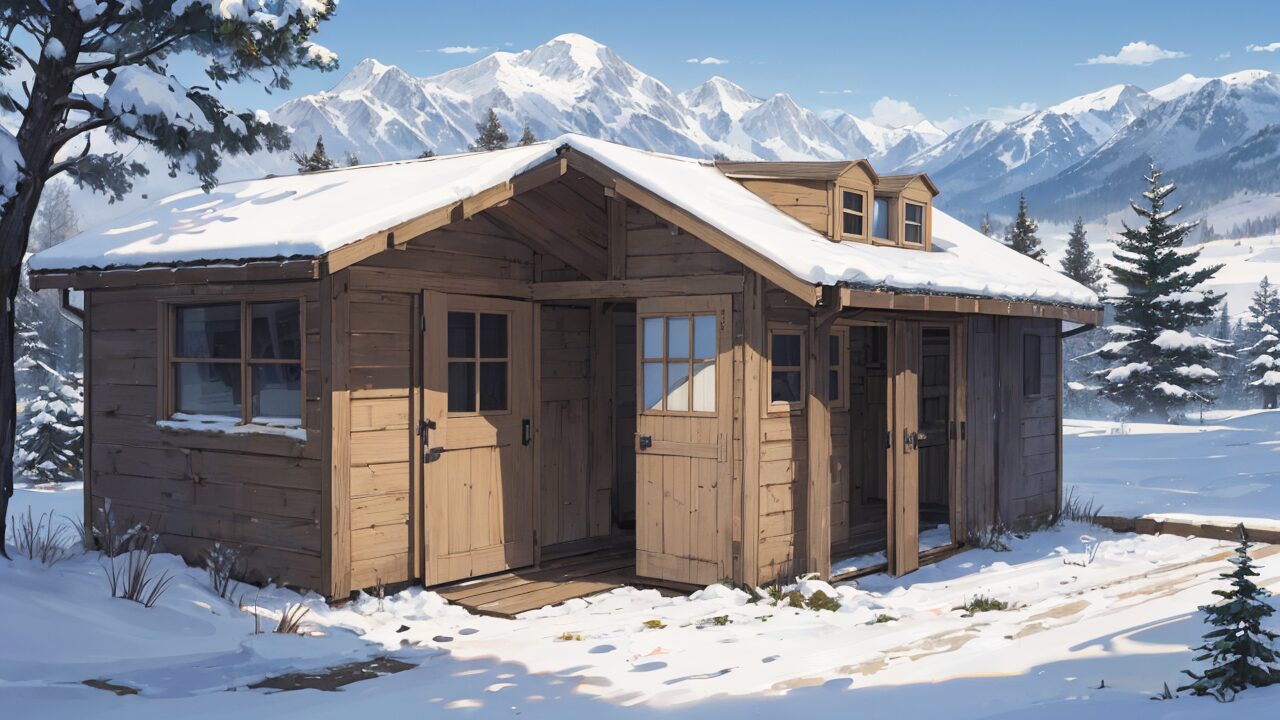 雪景色/納屋/小屋/家/イラスト素材