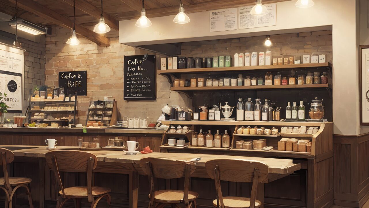 カフェ/店内/カウンター席/イラスト素材