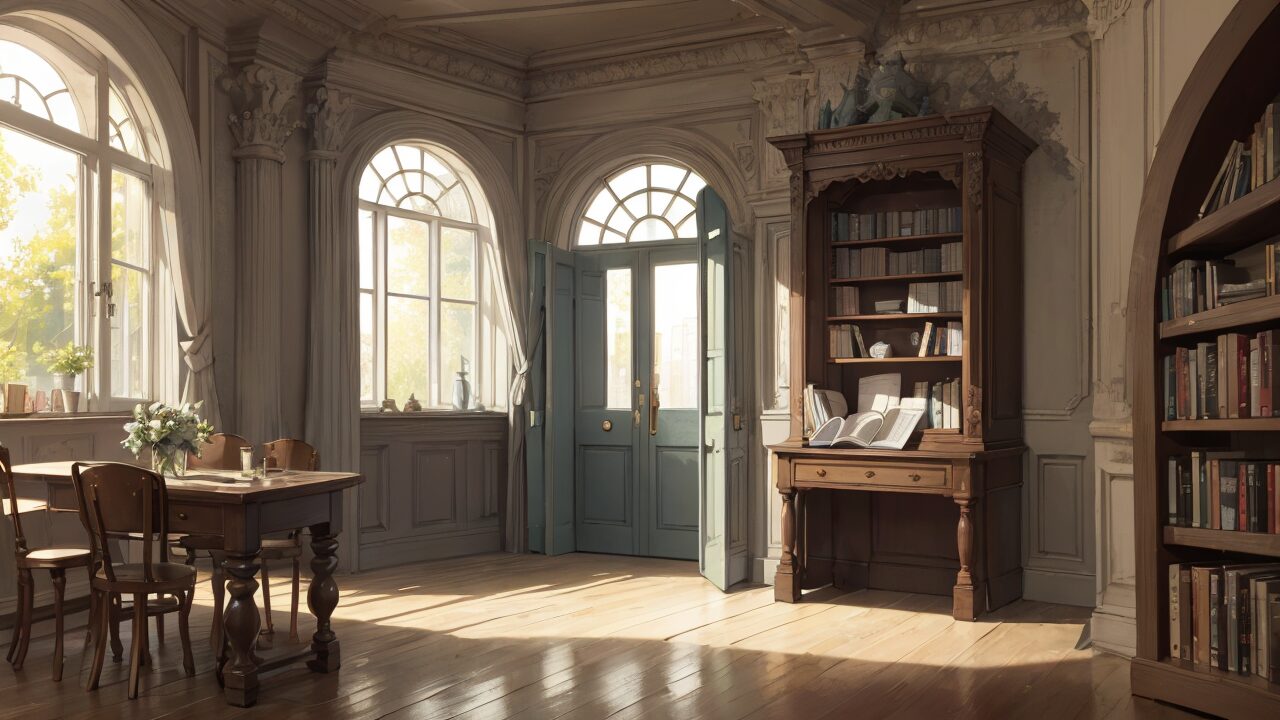 ヨーロッパ/室内/本棚/イラスト素材
