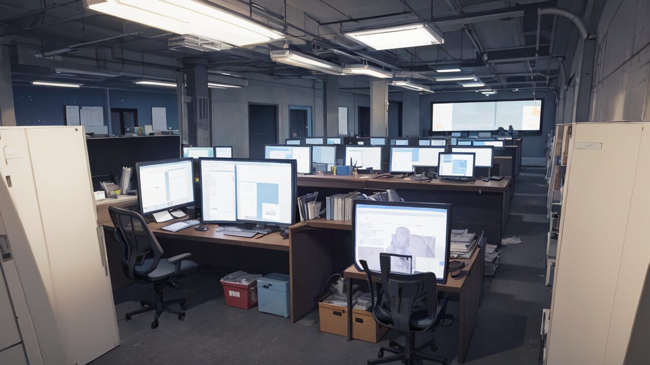 会社/オフィス/大きなモニター/イラスト素材