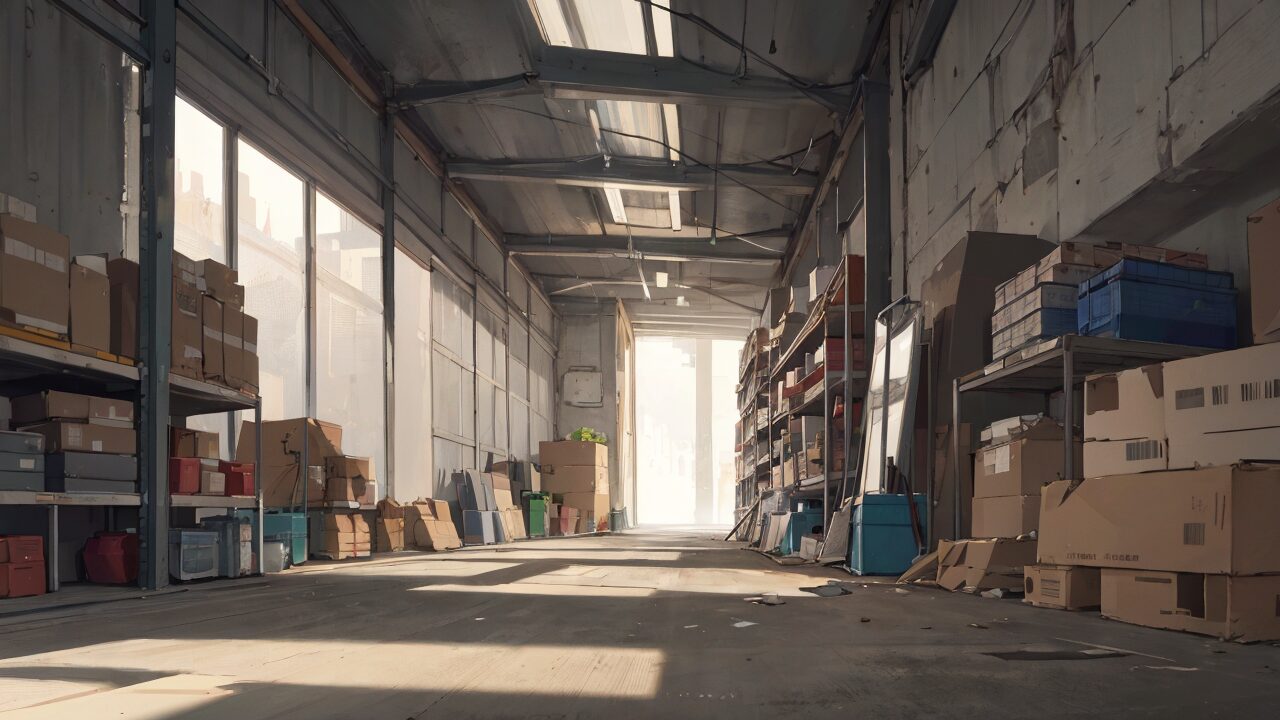 倉庫/段ボール/廃墟/イラスト素材