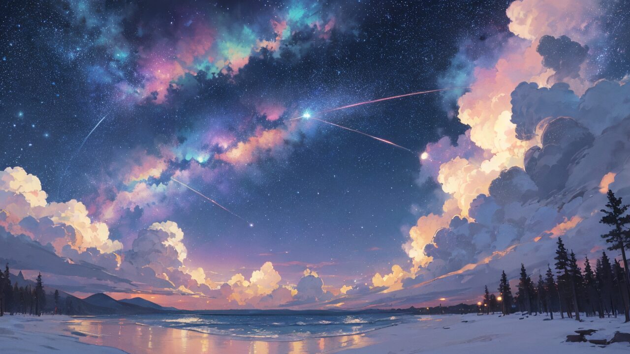 幻想的な空/夜空/海/イラスト素材