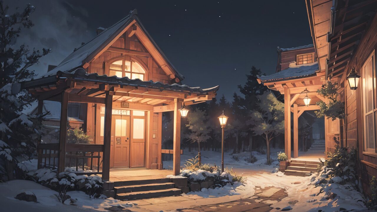 木造建築/雪景色/イラスト素材