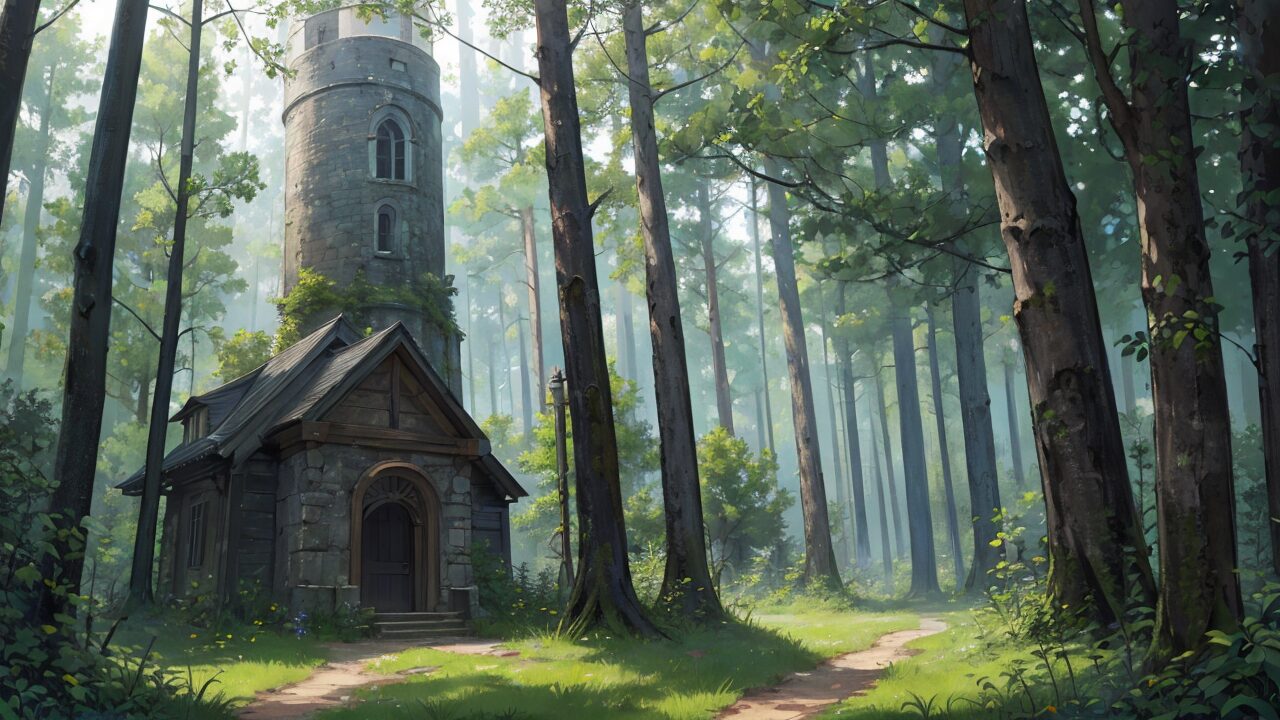森林/ヨーロッパ/塔/廃墟/小屋/イラスト素材