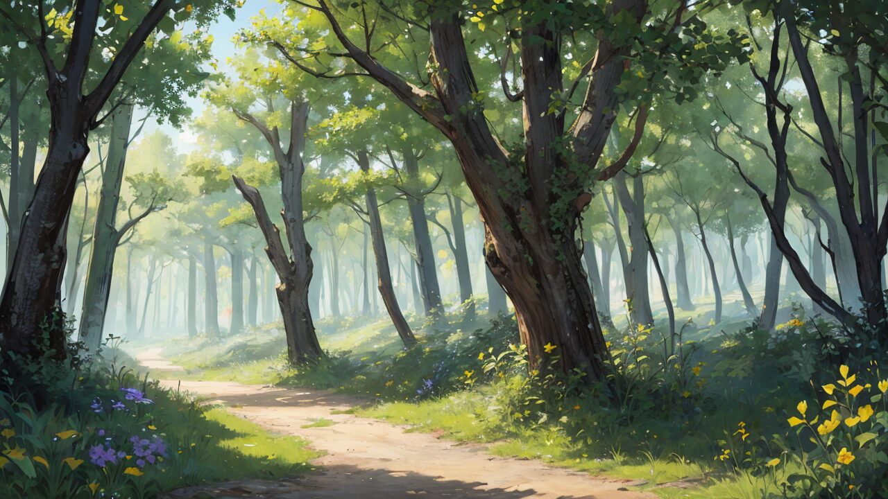 森林/木漏れ日/イラスト素材