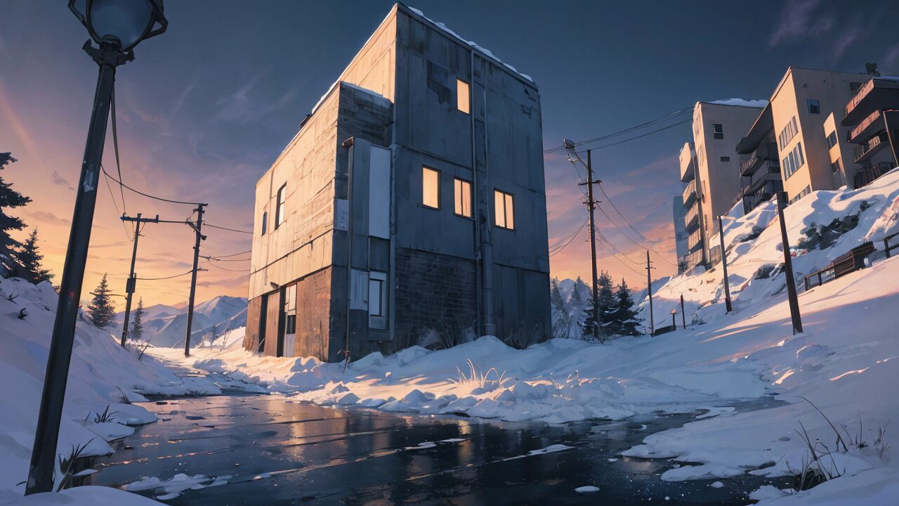 無機質なビル/コンクリート/雪/イラスト素材