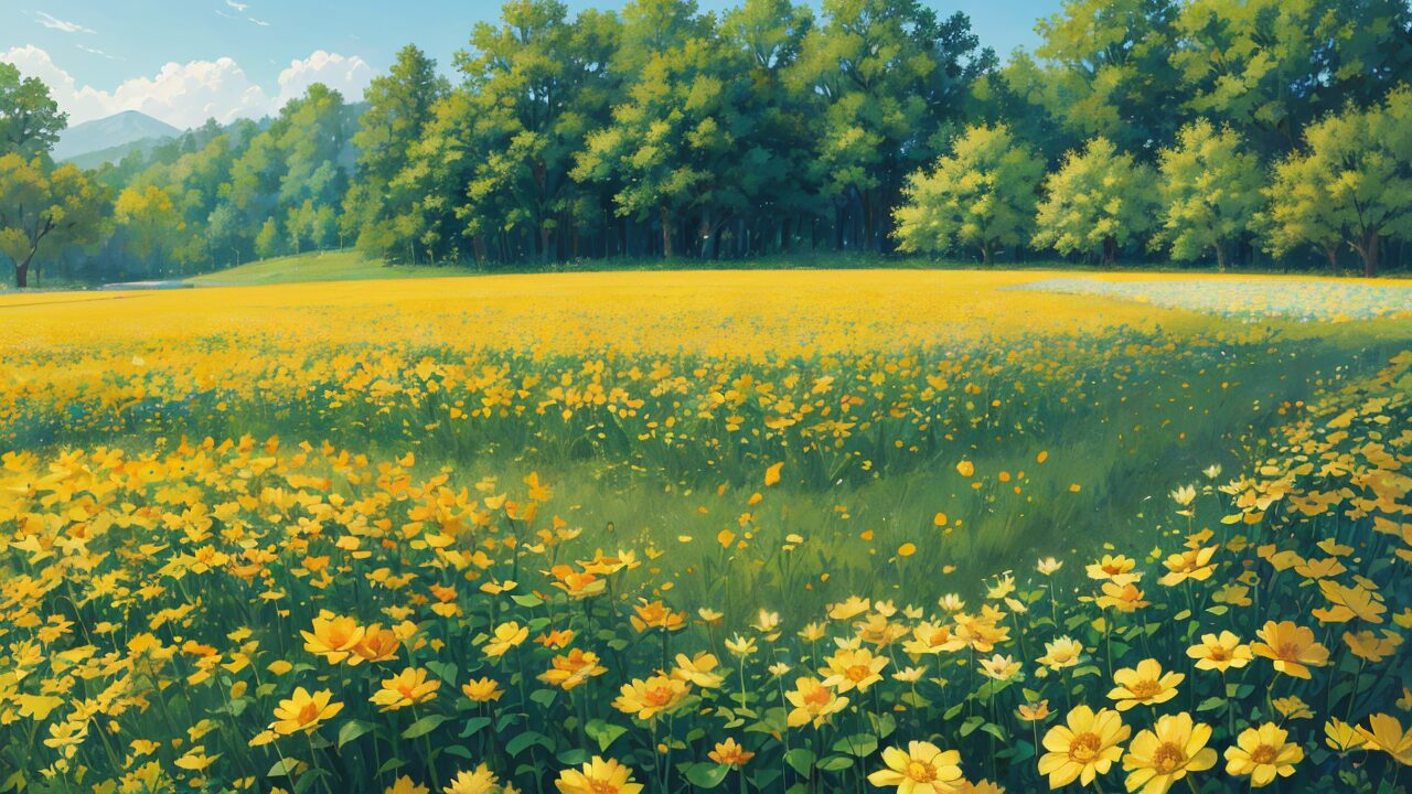 花/黄色い花/花畑/植物園/イラスト素材